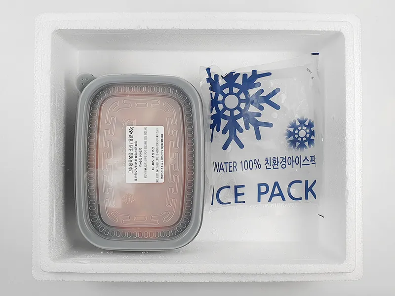 아이스박스에 아이스팩을 동봉하여 보내드립니다.