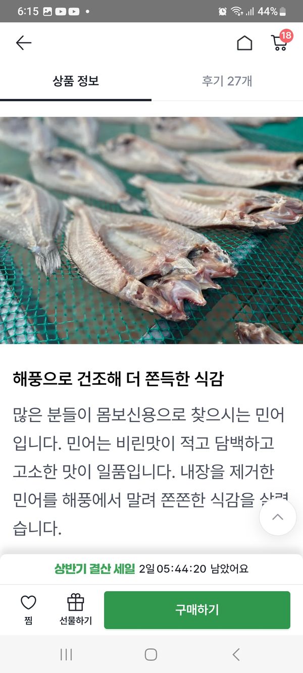 옵션: 반건조 민어 1마리 (마리 당 400g-500g내외/40-45cm 내외)