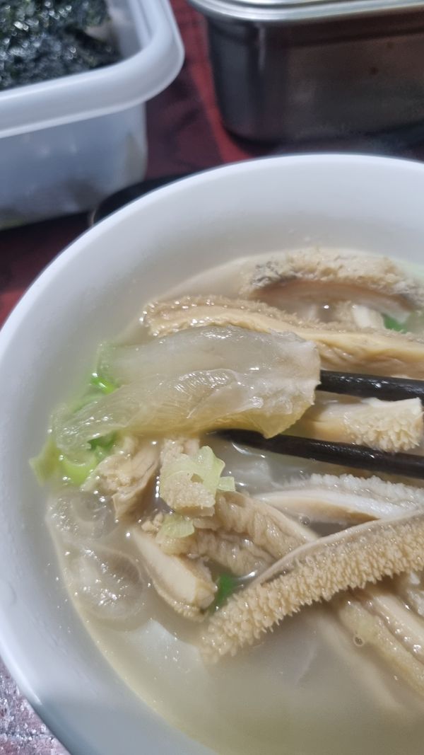 사골국물에 첨가하여 온 식구 한 끼 잘 먹었습니다