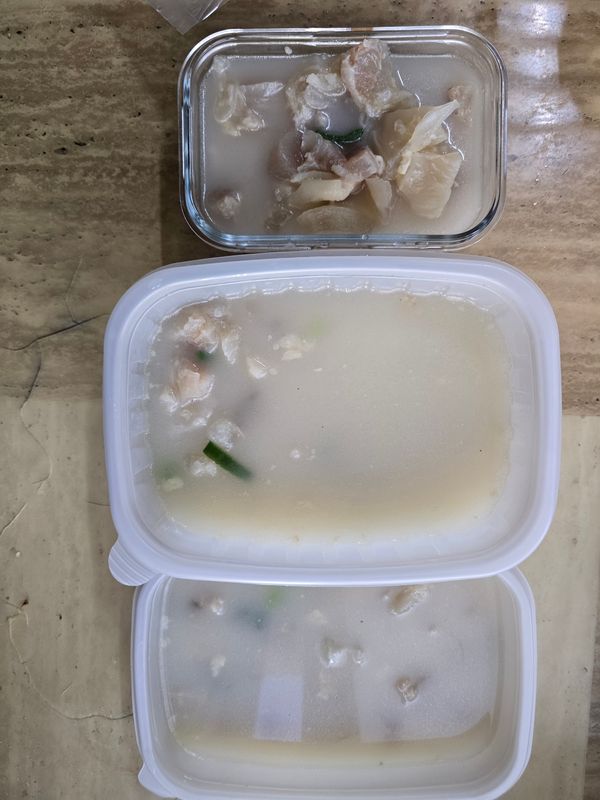 받자마자 집에 있던 곰탕 한병 얼려진거 떠서