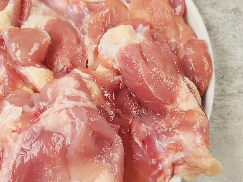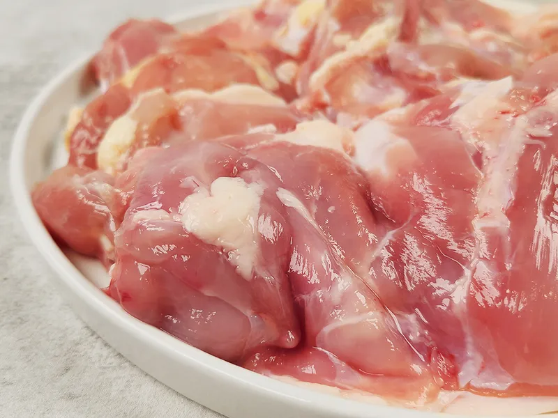 닭 다리에서 허벅살인 사이를 순살 작업한 것을 사이정육이라고 불러요. 닭의 두툼한 넓적다리를 잘 발라내었답니다! 지방은 적고 살이 많아, 촉촉하고 부드러운 육질이 특징이에요.