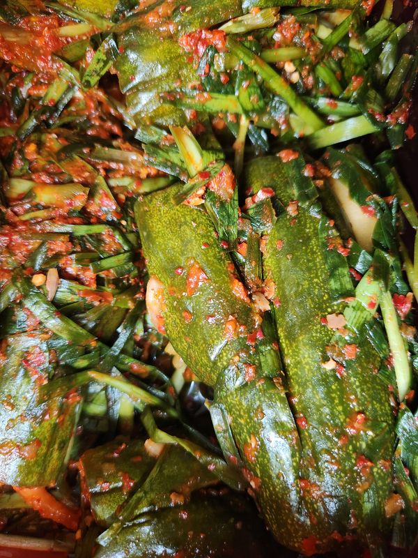 젓갈향이 정말 감칠맛향 그 자체이고, 정말 잘 익어서 맛이 제대로인데 오이가 무른 식감이 아닌 아삭아삭한 식감에 부추를 많이 넣고 담근 오이소박이에요. 제가 맵지리인데 적당한 보통 맵기여서 아이들도 잘 먹어요. 명절 지나고 대량구매 해야겠어요. 이번에 좋은 소박이 맛집을 찾은 듯 합니다.