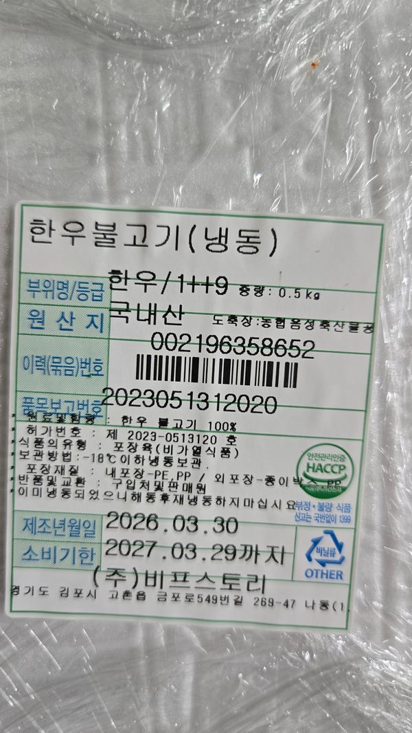 다 녹아와 신선도는 떨어지지만 너무 연하고 맛있네요 반은 불고기 양념해서 먹고 반은 냉동시켰어요