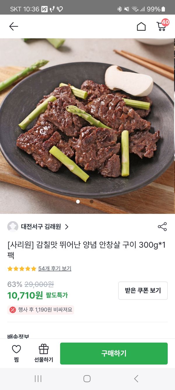 하나하나 직접 손으로 안창살에 칼집을 내고, 비법 양념으로 숙성해 더욱 깊은 맛과 감칠맛을 느껴볼 수 있습니다. 한입 베어 물면 터져 나오는 육즙! 오늘의 고기반찬으로 준비하면 온 가족이 맛있게 드실 수 있을 거예요.