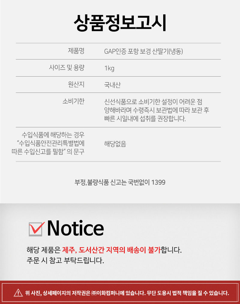 상품정보 제공고시 (원재료 및 원산지 등)