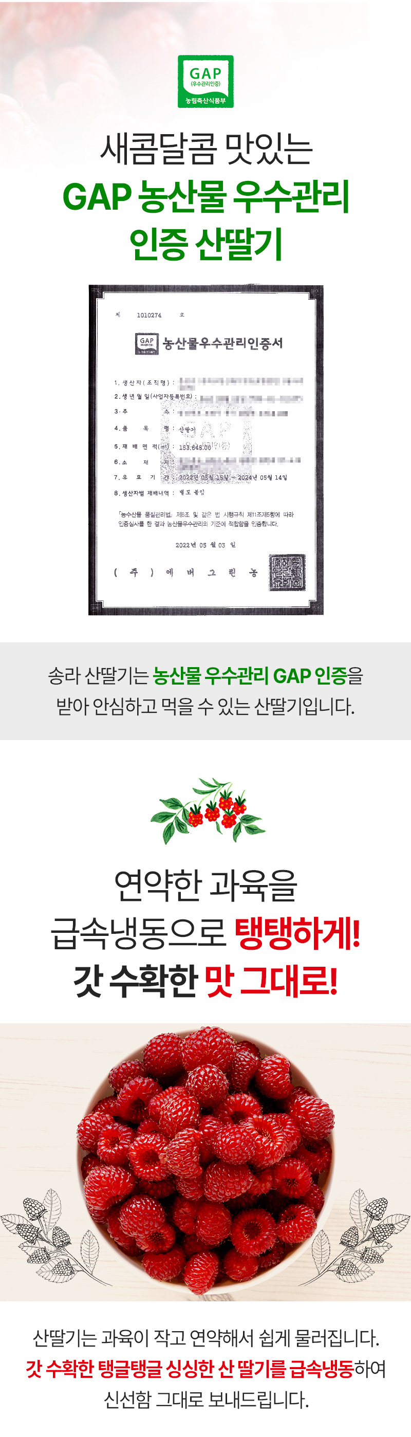 자연맛남 포항 보경 햇 산딸기(냉동) 1kg