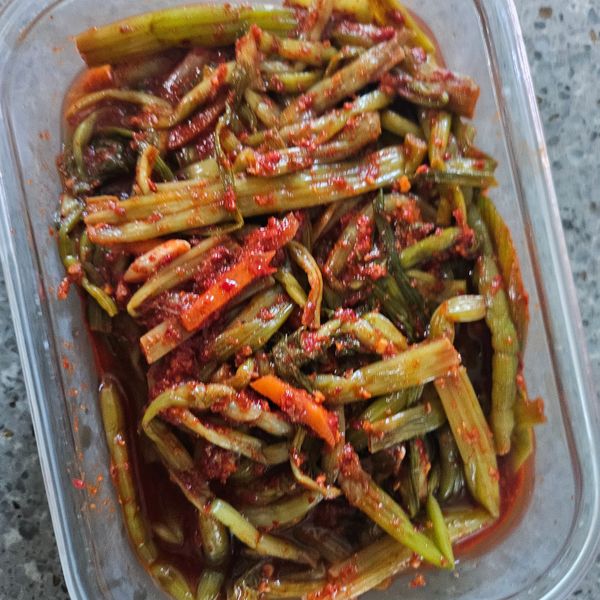 작년에 먹고 이번에도 시켰어요,,잎부분은 제거하고 담앗슴해요,,가는부분과 잎부분은 질겨요,,양념은 씀씀하니 맛나요