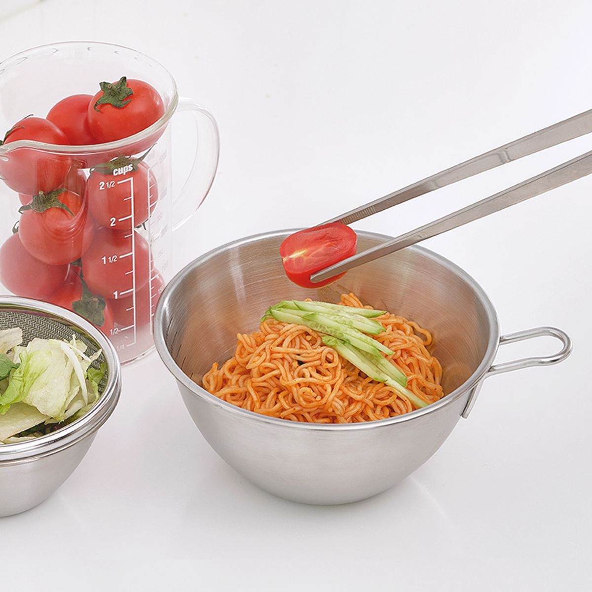 스테인리스 뉴 미니 숏핸들 믹싱볼 채반 세트 11cm / 350ml 과일 야채 바구니 채망 계량컵