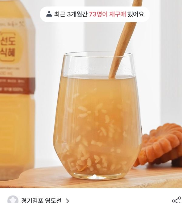 식혜가 달지않고 제입맛에 안성맞춤 이네요 자주 구입해서 먹고 싶은데 가격이 좀 있어유~ 가성비 좋은 가격에 구매해서 먹으려고 수시로 보고 있어요~