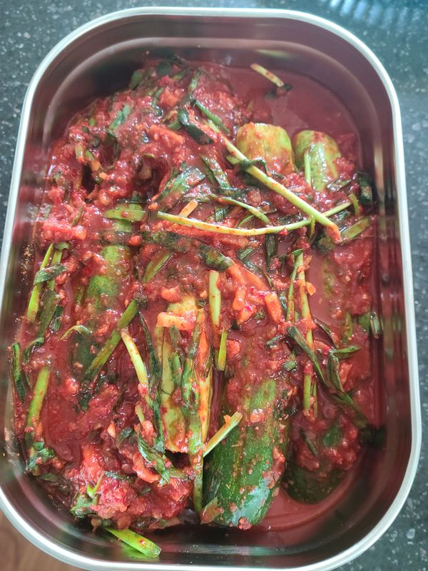 통오이소박이 진짜아삭하고맛있음양념도 넉넉하게줘서 딱좋네요 가끔김치같은거주문하면양념적게줘서 김치가말라서 맛없어 버리는경우가잏었는데 진짜 맛있음 요즘입맛없을때딱좄은오이소박이짱