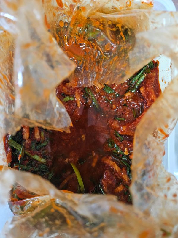 양념이 정말 맛 있어요. 금방 물러져서 아쉬었어요. 양념은 밥에 비벼 먹어도 맛있어요. 양념만 남은 사진