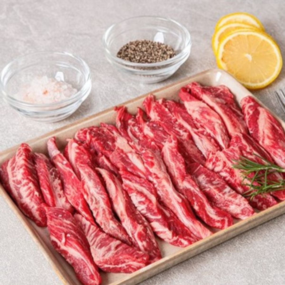 한국인에게 가장 사랑받는 소고기 부위 중 하나인 갈빗살! 마블링이 촘촘해 고소하며 쫄깃한 식감을 자랑하죠. 미국산 초이스 등급 이상의 상품으로만 진행해 그 품질은 더할 나위 없답니다.
