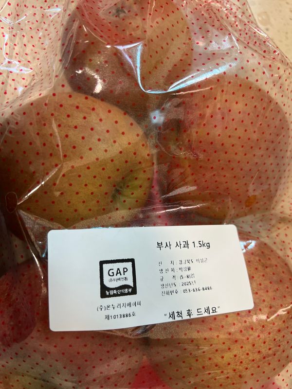 옵션: [25/12/03 수령] GAP 가정용 부사사과 1.5kg(5-8과)