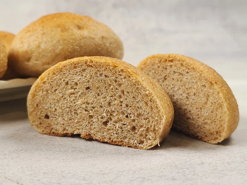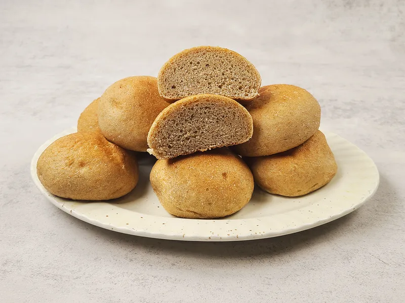 고온에서 구워 더욱 고소하고 담백한 통밀 모닝빵입니다. 손에 딱 들어오는 적당한 사이즈로 아이들 간식으로도 좋아요.