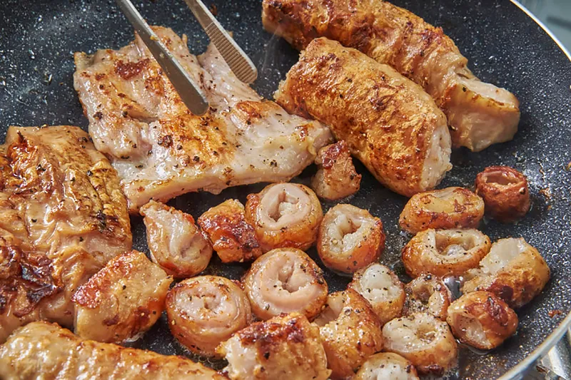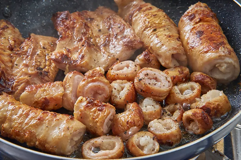 돼지 막창은 동그랗게 자르는 것보다 배를 갈라서 네모나게 자르는 것을 권장합니다. [가스레인지 사용 시] 냄새에 민감하신 분은 소주·청주·요리술 등을 3 큰술 정도 넣고 구워 주시면 좋습니다. 집게로 굴려 주면서 중불에 5분 굽고, 자른 후 약불로 5-10분간 더 구워주세요! 구우실 때 꼭 기름을 제거해 주세요. 덜 익으면 질길 수 있으니 바싹 익혀 주세요. [에어프라이어 사용 시] 냄새에 민감하신 분은 소주·청주·요리술 등을 3 큰술 정도 넣고 구워 주시면 좋습니다. 180℃에서 15분 구운 다음 뒤집어서 15분간 더 구워 주세요. 자른 후 5분 더 구워주시면 더욱 바삭하고 고소하게 즐길 수 있습니다. 덜 익으면 질길 수 있으니 바싹 익혀 주세요.