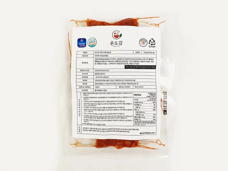 100% 국내산 계육을 사용해 쫀득한 식감과 신선함을 자랑합니다. 최상급 품질의 계육만을 엄선해 사용하니 잡내 걱정 없이 한입에 간편하게 즐겨보세요!