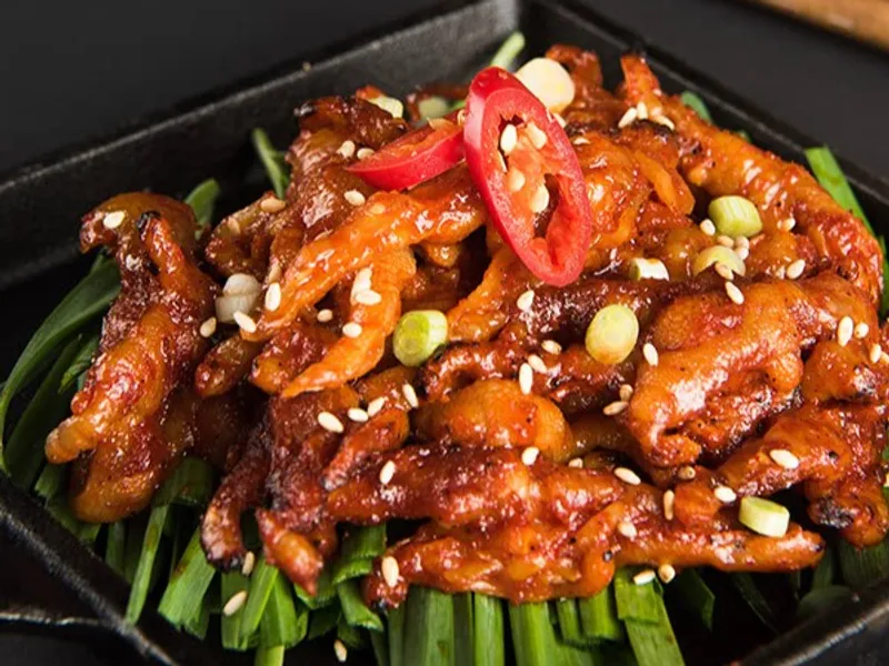 매콤 달콤한 특제 양념으로 맛있게 버무려진 닭발을 300도 이상의 직화 화덕에서 구워냈습니다.