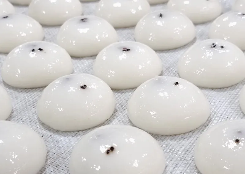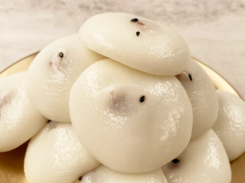 찹쌀떡처럼 쫀득쫀득하면서도 부드러운 식감이 정말 최고! 그 안에는 과하게 달지 않은 팥앙금을 넣어 계속 먹어도 질리지 않는 맛입니다.