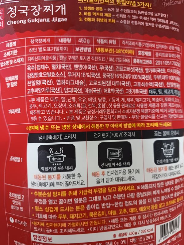 옵션: 청국장찌개 450g(1-2인분)*3팩