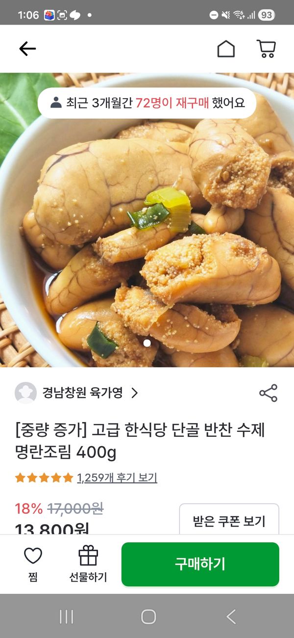맛있습니다 재구매했답니다 가격이 조금 저렴했으면 좋을것 같아요