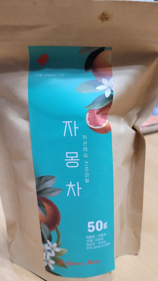 봉지를 개봉할때 짙은 자몽향기가 화악~! 자몽청과 함께 자몽차로 먹습니다