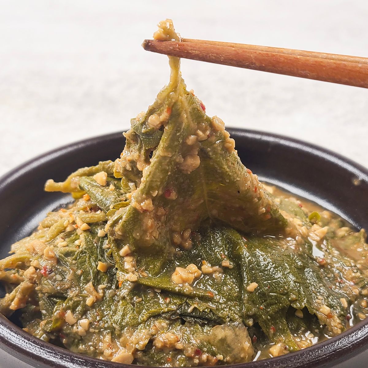 깻잎에는 철분, 칼슘, 칼륨 등 무기질과 영양이 듬뿍 함유되어 있답니다. 산 아래에 위치한 충청남도 금산군 청정 환경에서 수확해 장아찌의 맛과 질이 달라요!