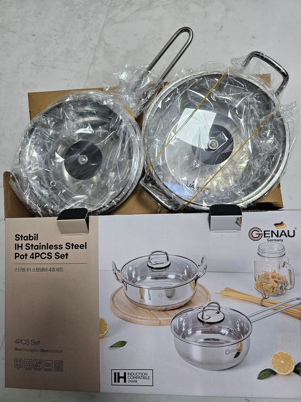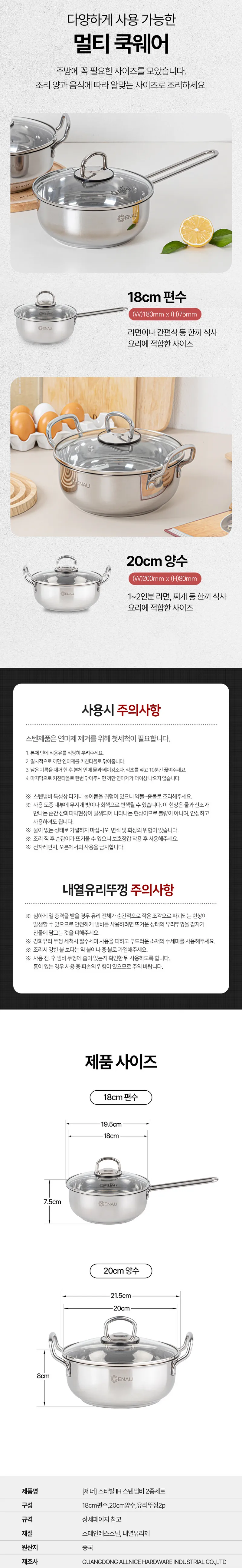안심 사용 IH 스텐냄비 2종 세트 (편수+양수+유리뚜껑 2p)