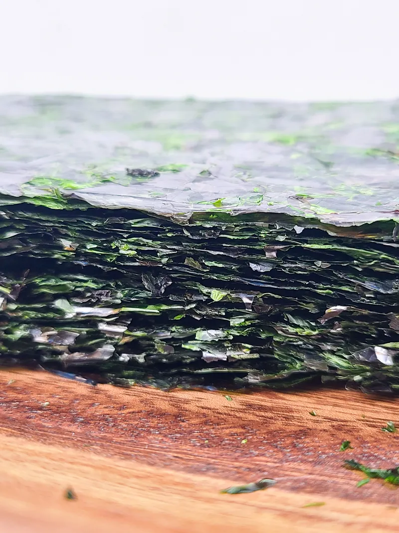 일반 파래김보다 파래 함량이 높아 더 진한 향과 맛이 특징이에요.