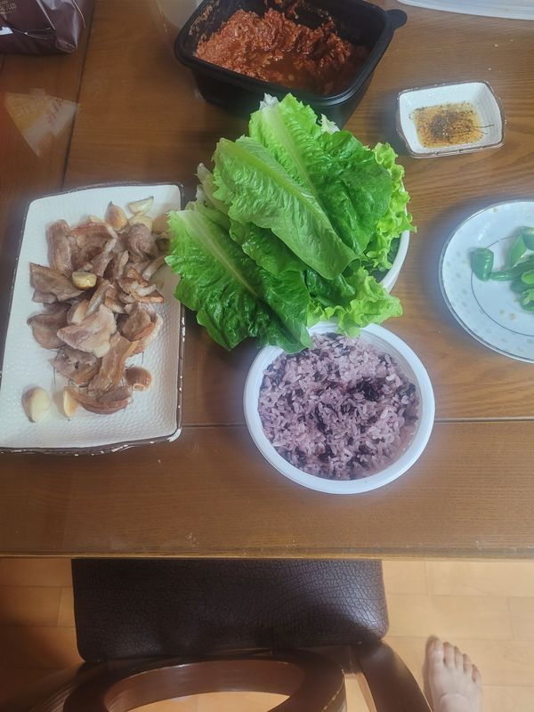 상추 너무싱싱하고 아삭하고 맛있어요.삼겹살에 맥주에 싱싱한 야채한상 차림으로 혼자 먹어도 맛있네요