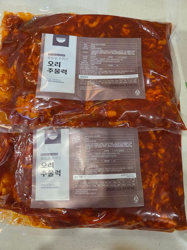 옵션: 오리주물럭 800g(2-3인분)*1팩