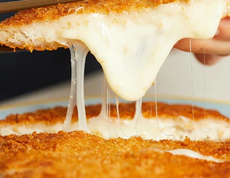 짭쪼름하고 고소한 모짜렐라 치즈가 쭉쭉 늘어나는 치즈 돈가스입니다. 두툼한 돼지고기 통등심 안에 치즈를 아낌없이 넣었어요! 분쇄육이 아닌 통등심을 사용해 한입 베어무는 순간 입안에 퍼지는 풍부한 육즙을 즐기실 수 있답니다. 우리 아이가 좋아하는 최애 반찬이에요💕