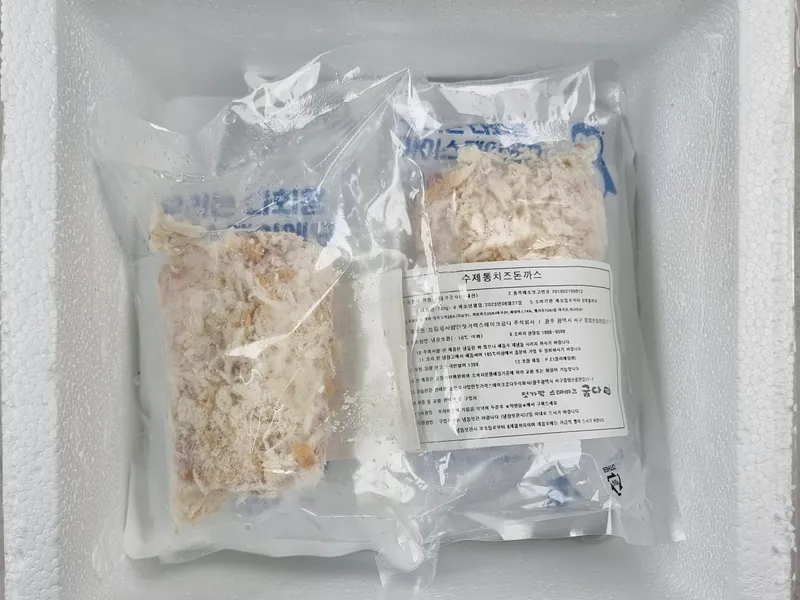 적당량의 식용유를 넣은 후 약불에 노릇노릇 익혀주세요. 지지듯이 양쪽으로 뒤집어가며 구워주시면 좋습니다. 치즈돈까스는 가운데를 젓가락으로 눌러 들어갈 경우 기름이 빠지도록 해주세요.