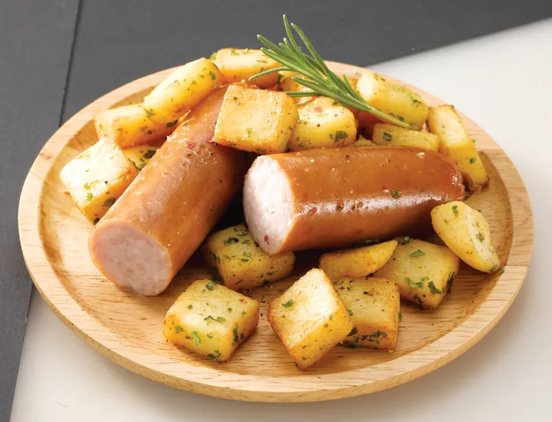 정통 기법으로 훈연되어 고소한 향과 달콤한 맛을 가지고 있는 스모크 소시지입니다. 생고기를 통으로 절단해 사용하여 육즙이 입안 가득해요.
