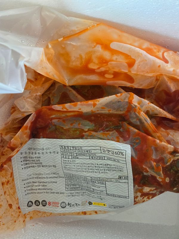 포장 상태 김치 다 굿이고 맛도 좋네요. 양념이 적당히 약간 매콤한게 흰 쌀밥에 올려 먹으니 맛이 좋네요