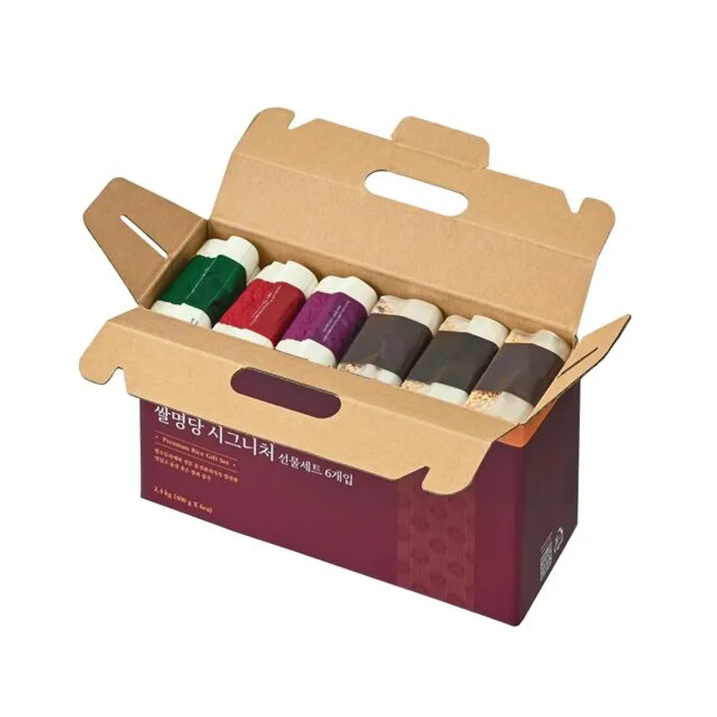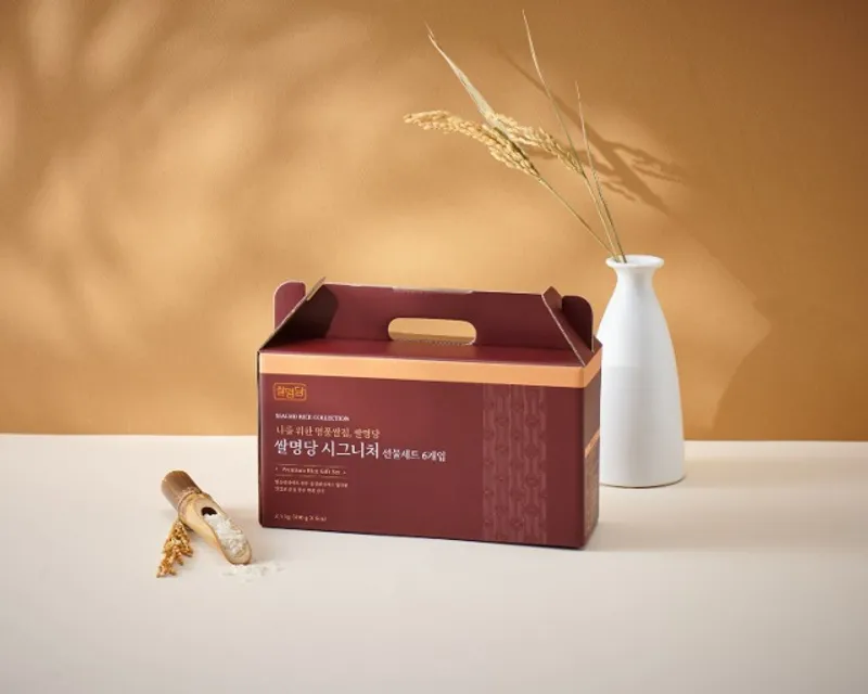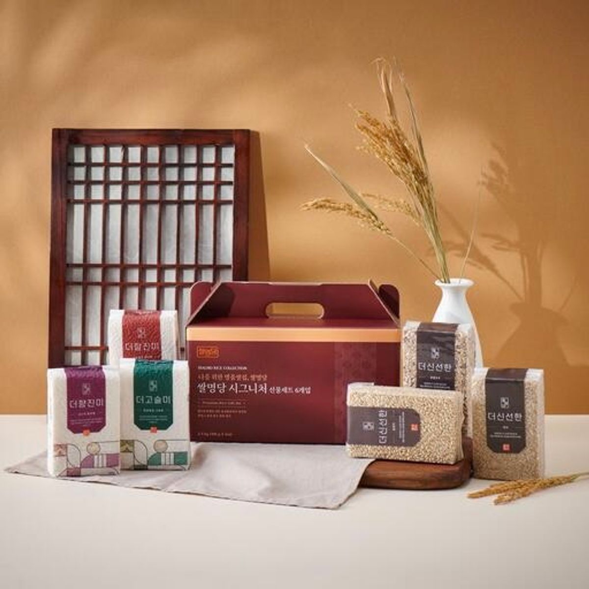 시그니처 백미 3종과 잡곡 3종을 하나의 구성으로 모두 만나볼 수 있는 선물세트예요. 더향진미, 더찰진미, 더고슬미 그리고, 현미와 찰현미, 혼합9곡을 어여쁘게 포장하여 담았답니다. 좋은 품질의 국내산 쌀과 잡곡을 담은 선물세트를 직접 전해보세요.