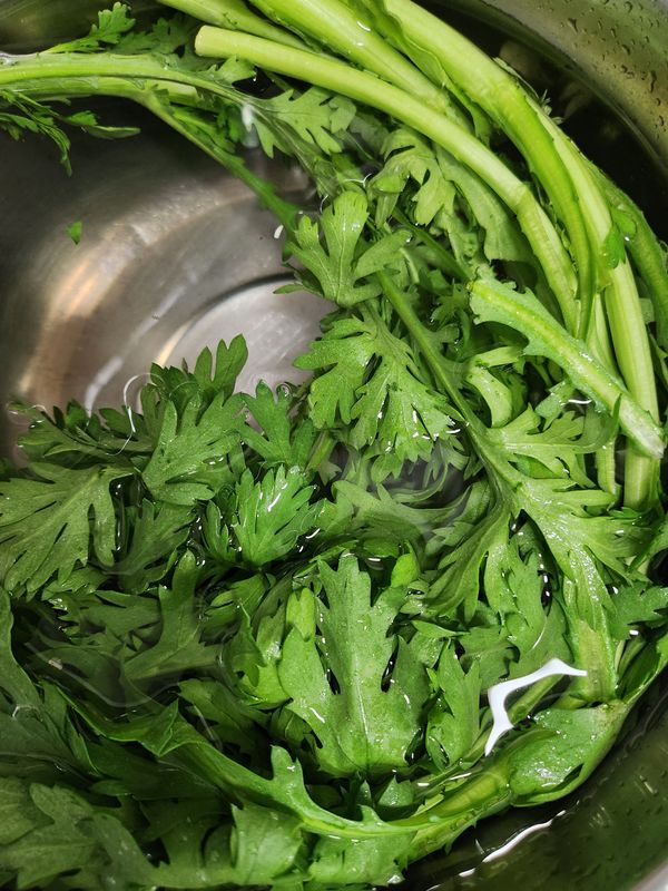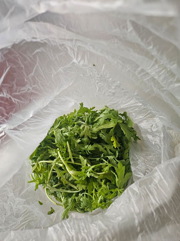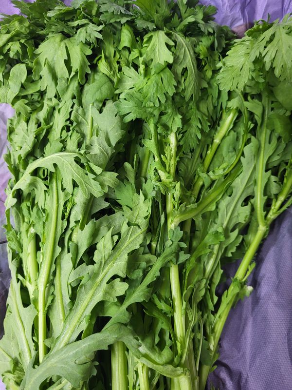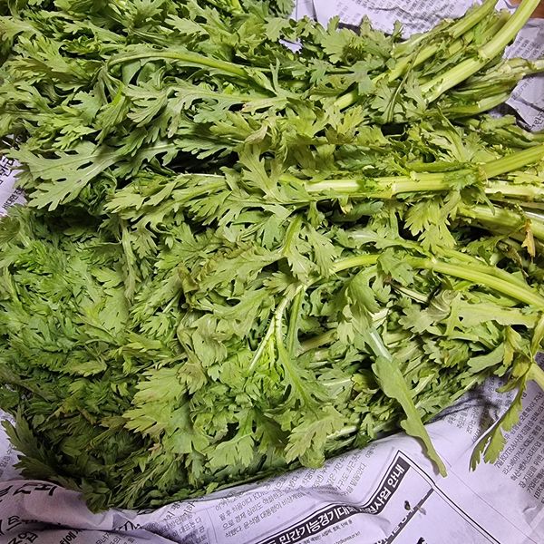 빠른 배송 싱힝한 쑥갓 줄기가 굵어서 씹는맛이 큽니다 향이 은은하고요 억샌것 없이 맛있어요