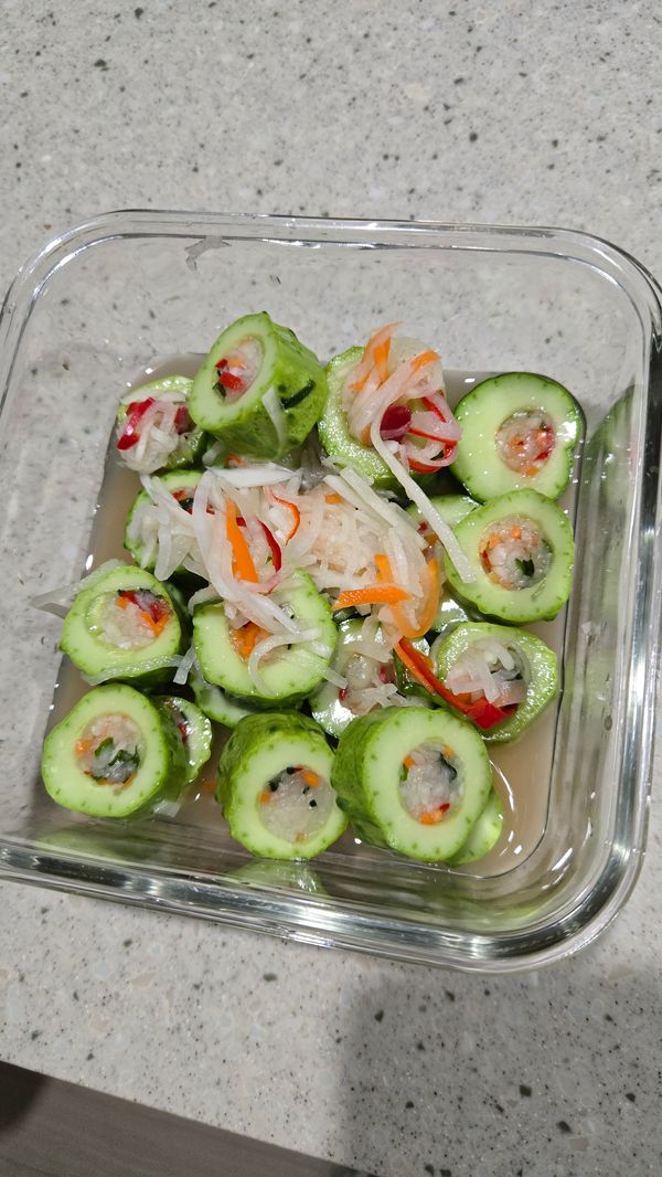 40년전쯤 병원에 입원했을때 환자 가족분이 이와 비슷하게 해 오셨는데 엄청 맛있게 먹었던기억을 되 살려 주셨습니다 오이아삭이 고추로도 하셨드라구요