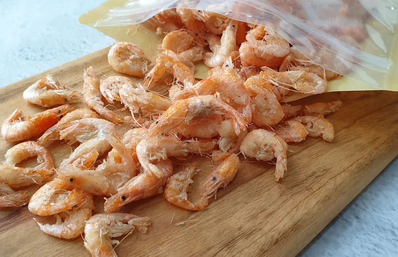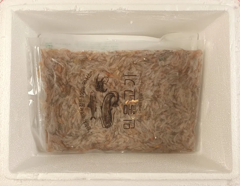 조업 후 선별 작업을 거친 민물새우를 지하수 물에 2~3번 행군 다음 지퍼팩에 포장해 급속 냉동 시켜 신선도를 보존했어요.