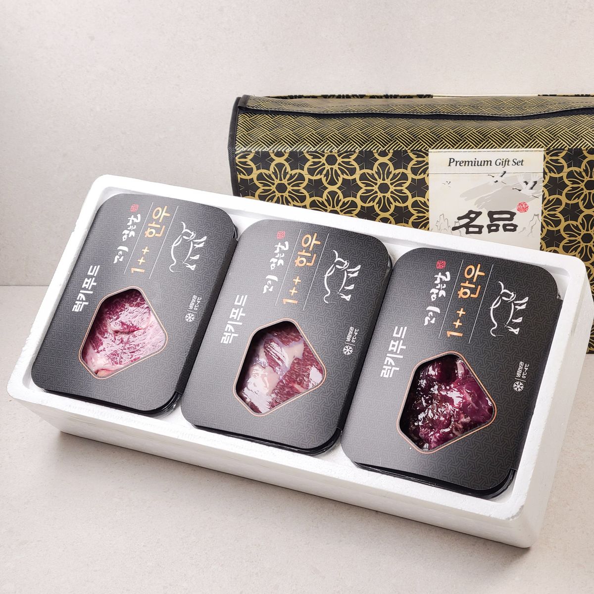 최고급 품질의 1++ 등급의 한우 선물세트입니다. 등심, 양지, 불고기 구성으로 알차게 준비해 다양하게 맛보실 수 있어요.
