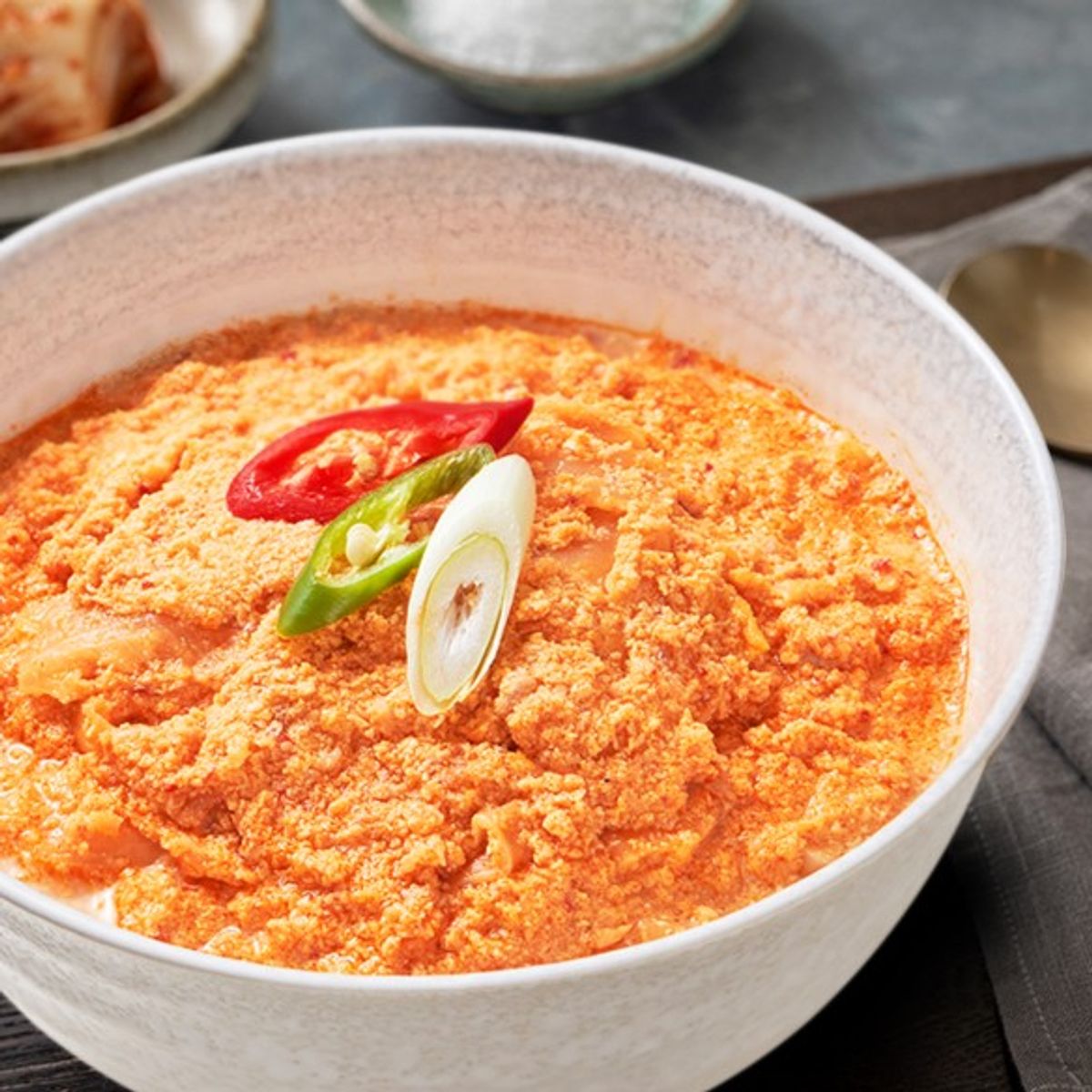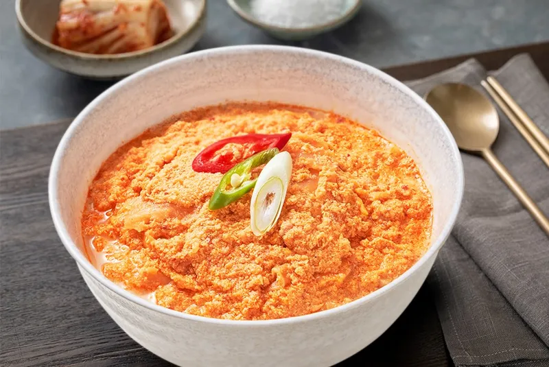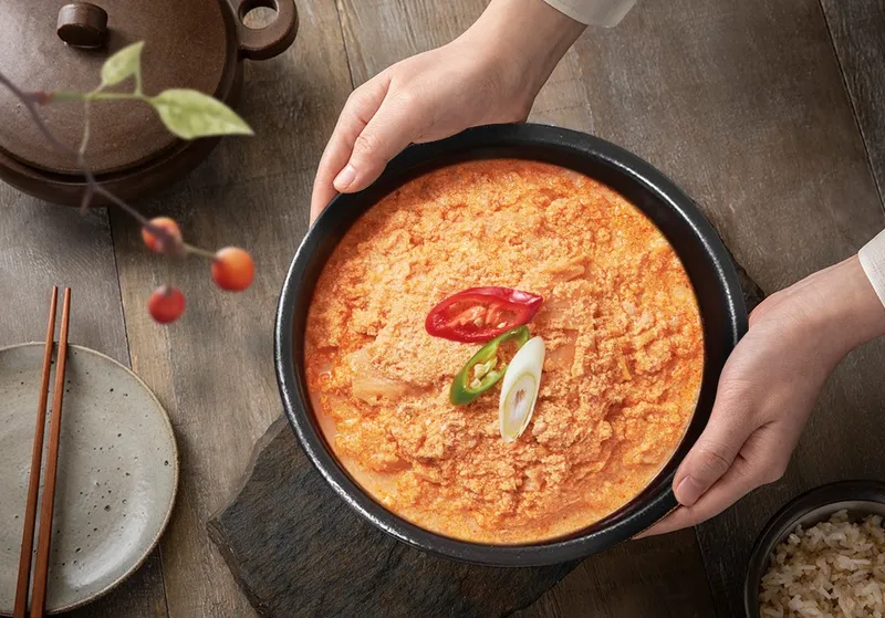 구수한 콩비지에 돼지고기, 대파, 마늘 등 풍성한 식재료를 담았습니다. 단백질 가득한 든든한 한 끼로 제격이에요.
