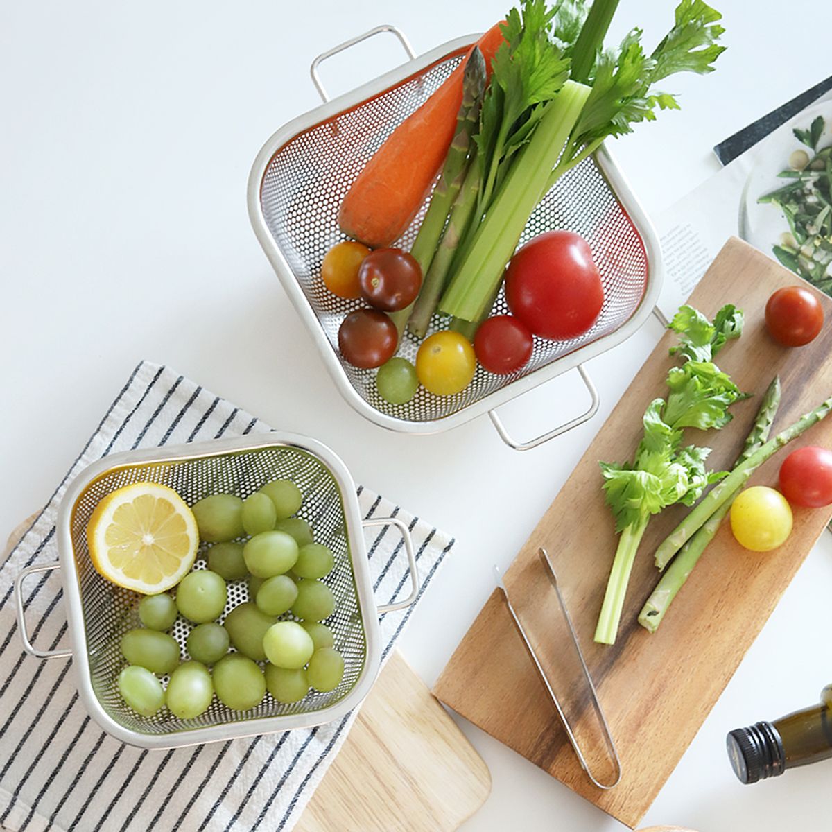 304 스텐 타공 손잡이 사각 채반 20cm / 다용도 바구니 물빠짐 야채 소쿠리