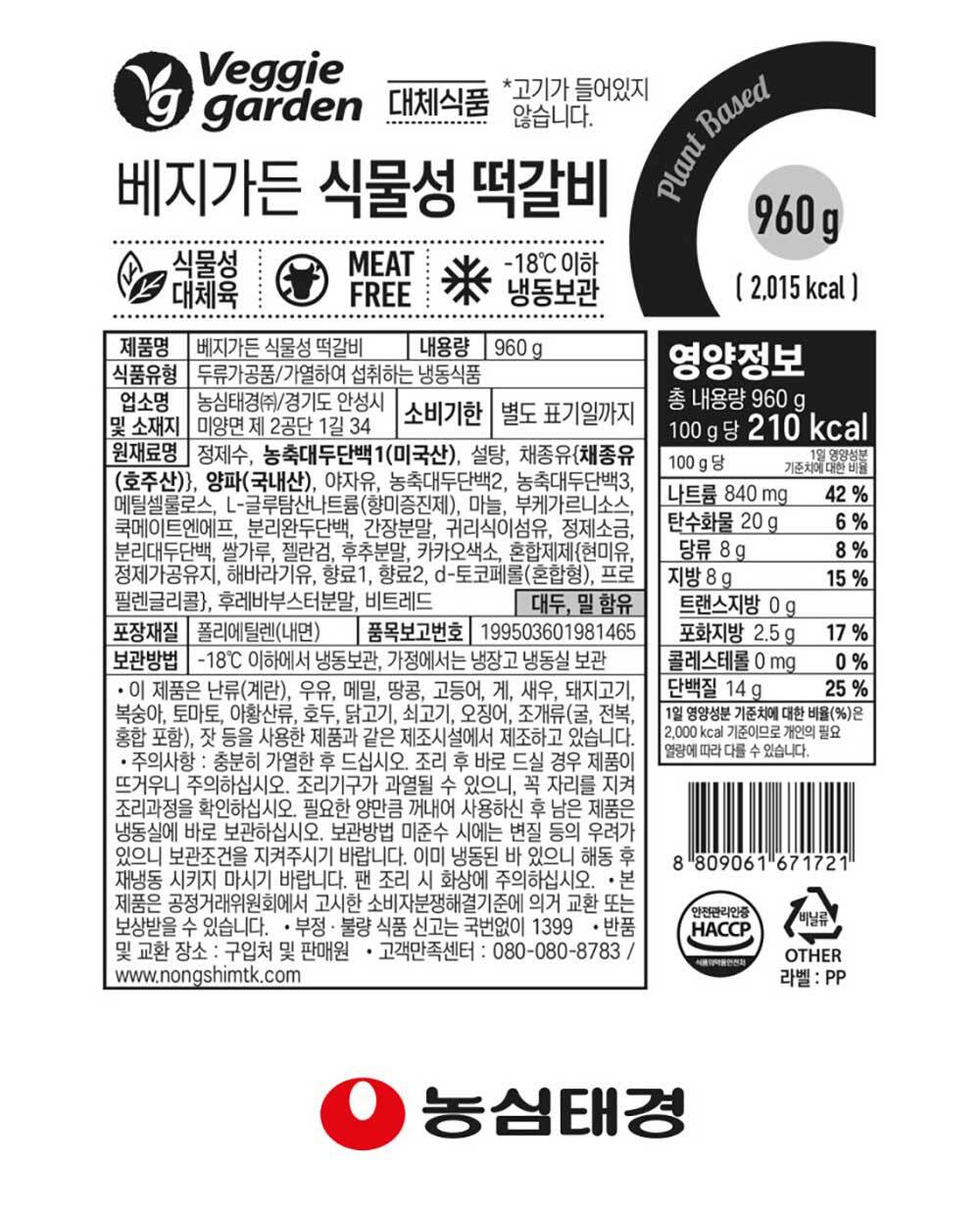 [G] 베지가든 숯불향 떡갈비 960g 대용량 (식물성 대체육) 1개