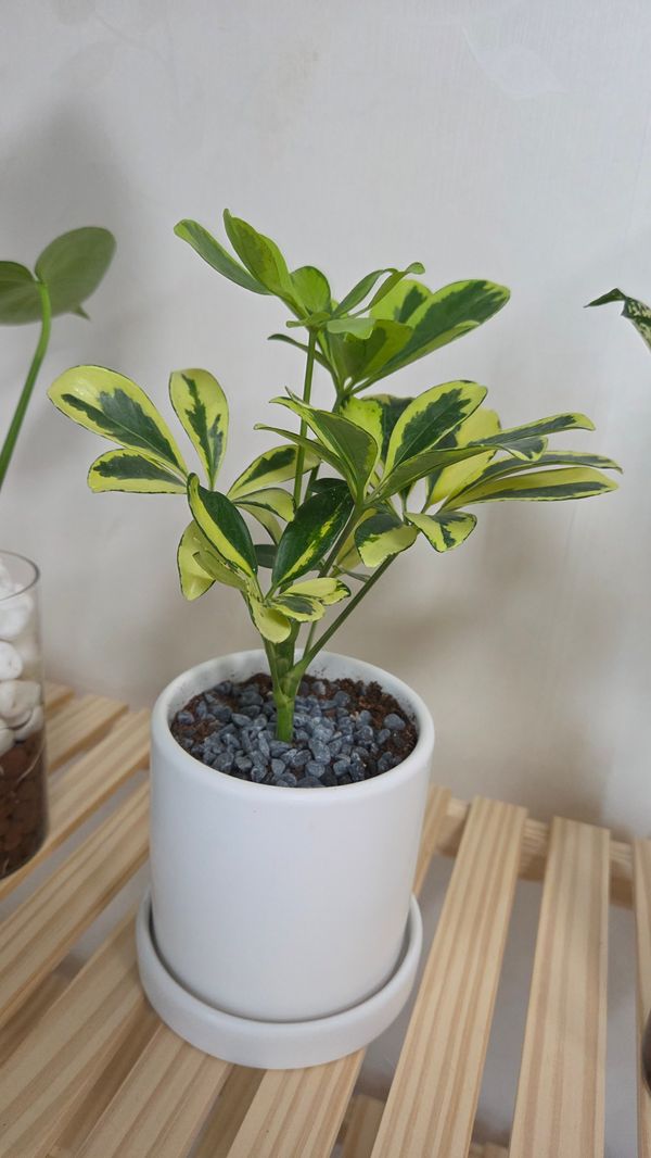 공간에 생기를 불어넣어 주는 칼라무늬 홍콩야자 (흰색 화분/크림 토분) (지름 11cm)