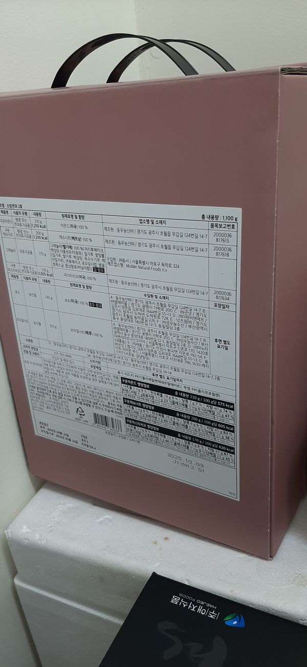 견과류 포장 상태도 고급지고 오도독오도독 맛잇어요 감사합니다 잘먹을께요 항상 응원 할께요