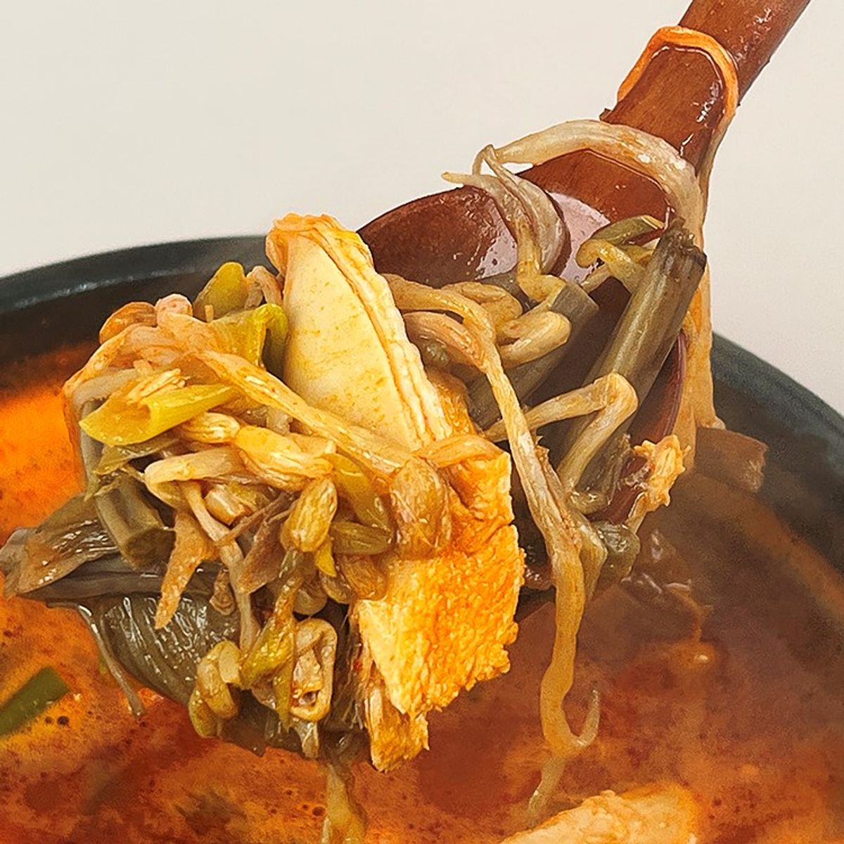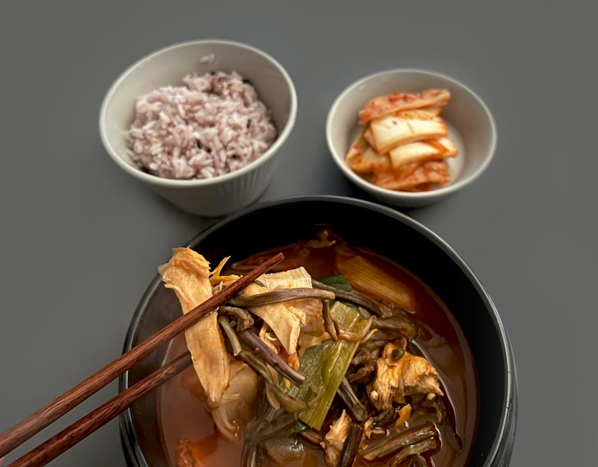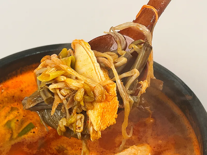 일반 닭과 차원이 다른 쫄깃한 씨암닭에 대파, 숙주, 고사리를 듬뿍 넣어 매콤 칼칼하고 시원한 국물이 일품입니다. 닭육수 본연의 맑고 진한 맛을 맛볼 수 있습니다. 특유의 쫄깃한 식감을 살리기 위해 하나하나 결을 살려 손수 찢어낸 닭고기를 아낌없이 담았답니다. 건더기를 푸짐하게 넣어 추가 재료 없이도 넉넉하게 즐기실 수 있습니다🙌