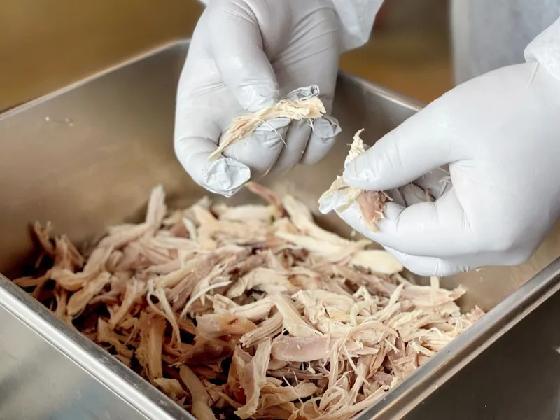 푸른 제주 동물복지 인증 농장에서 자란 씨암닭을 사용해 더 쫄깃하고 담백한 식감을 자랑합니다. 손수 결을 살려 찢어 쫄깃함이 배가 되었습니다! 동물복지인증 받은 농장에서 자체 개발한 미생물 발효 사료를 먹고 자란 건강한 닭이기 때문에 더 믿고 드실 수 있습니다.