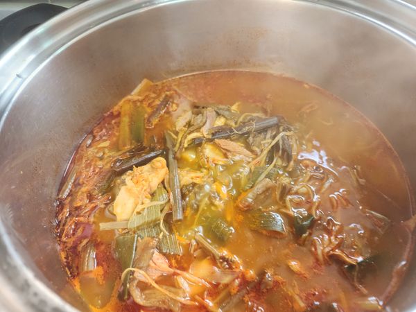 옛날 방식 그대로 가마솥에서 오랜 시간 푹 고아냈습니다. 일반 냄비에 끓여낸 것보다 더 깊고 풍부한 맛을 느낄 수 있습니다. 깊고 진한 맛은 그대로지만 간편하게 해동 후 끓여내기만 하면 조리 끝! 매콤 칼칼한 가마솥 닭개장을 집에서 편하게 즐겨보세요.