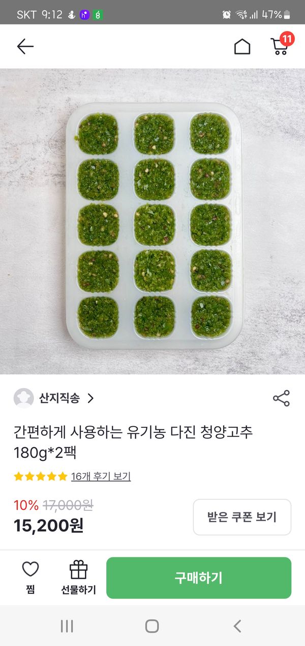 매운걸 못먹어서 평소에 칼칼한 느낌만 줄때만 청양고추 쓰는데. 소량쓰다보니 버리게 되는게 더많아서 아까윘고. 다져가며 사용하기 번거 로웠는데 딱좋은 제품이네요. 어찌나 신선한지 오픈하자마자 매운향이 확 올라와서 놀랬어요. 잘 사용할게요.