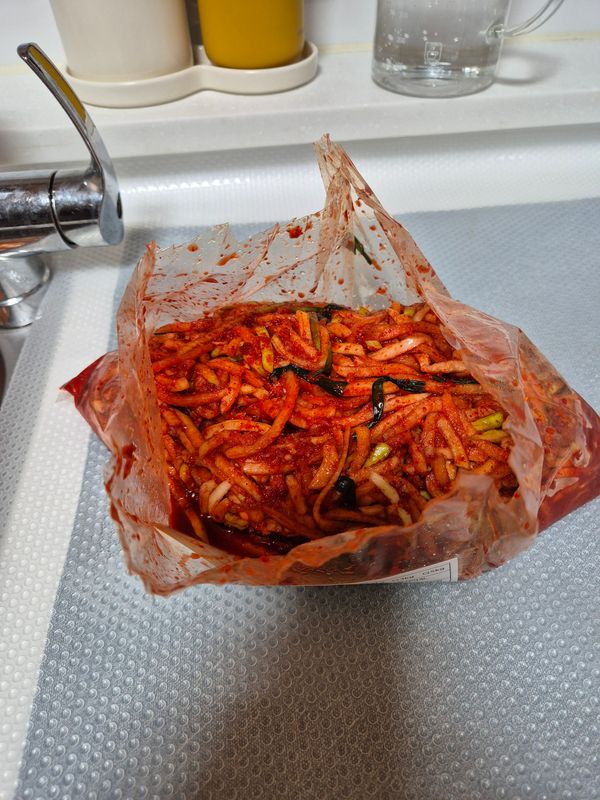 매콤하고 맛있어요.전 광주사람이라 젓갈 좋아하는데 간이 딱 맞아요.재료(파,무,고춧가루)도 신선하구요.금방 담은 맛이에요. 다 먹음 또 시킬게요.