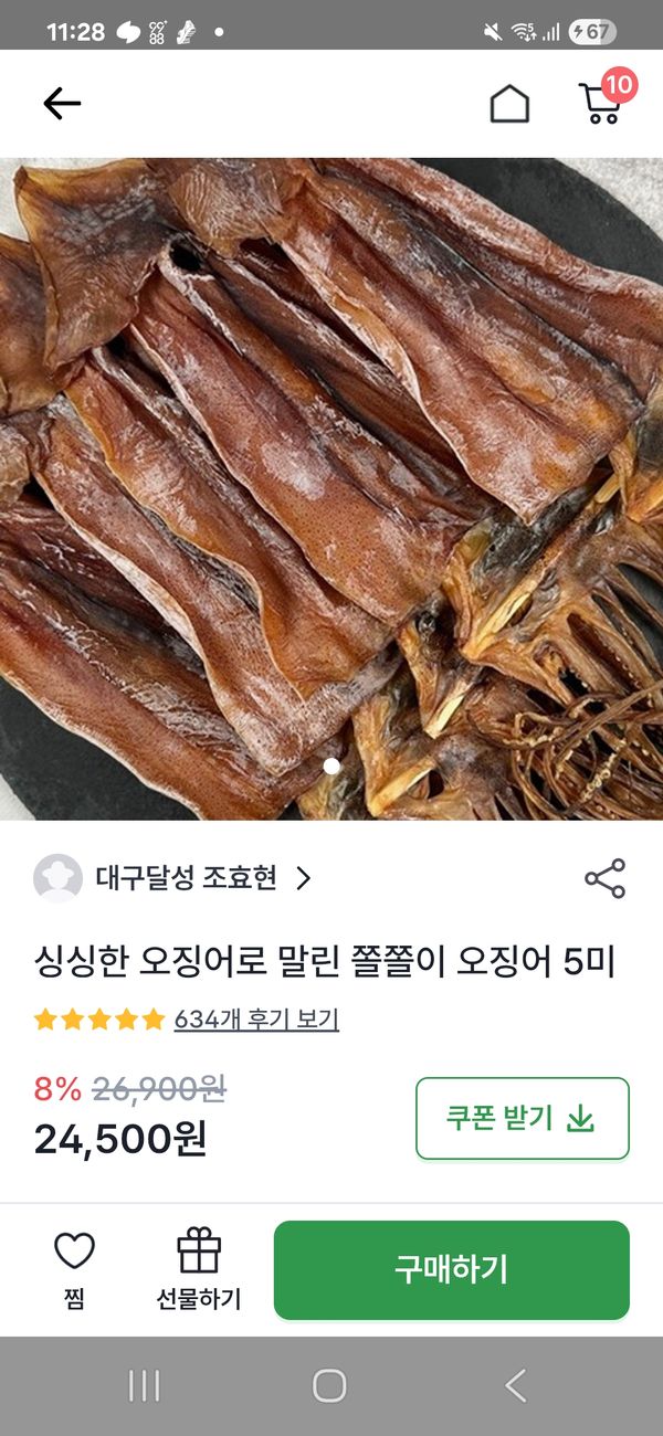 저녁먹고 바로 한 마리 먹었는데, 쫄깃하니 맛있어요. 굽지않아도 되니 편하고요 다 먹으면 재주문 예정이에요